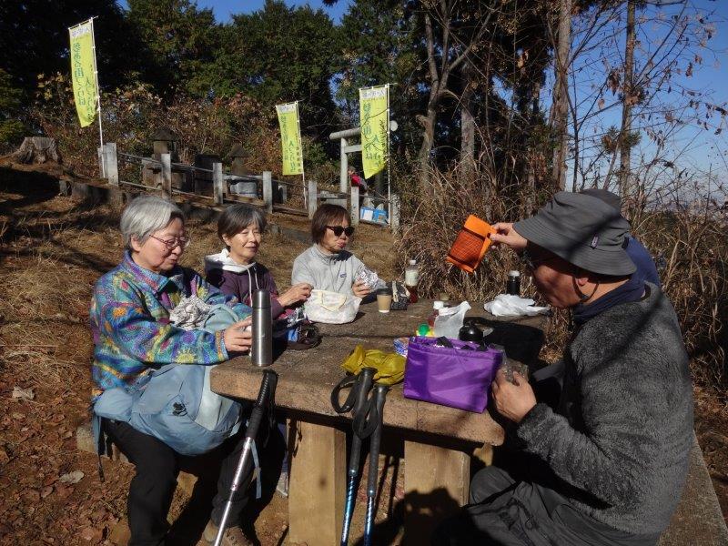 昼食後、城山湖を望める「ふれあい休憩所」を